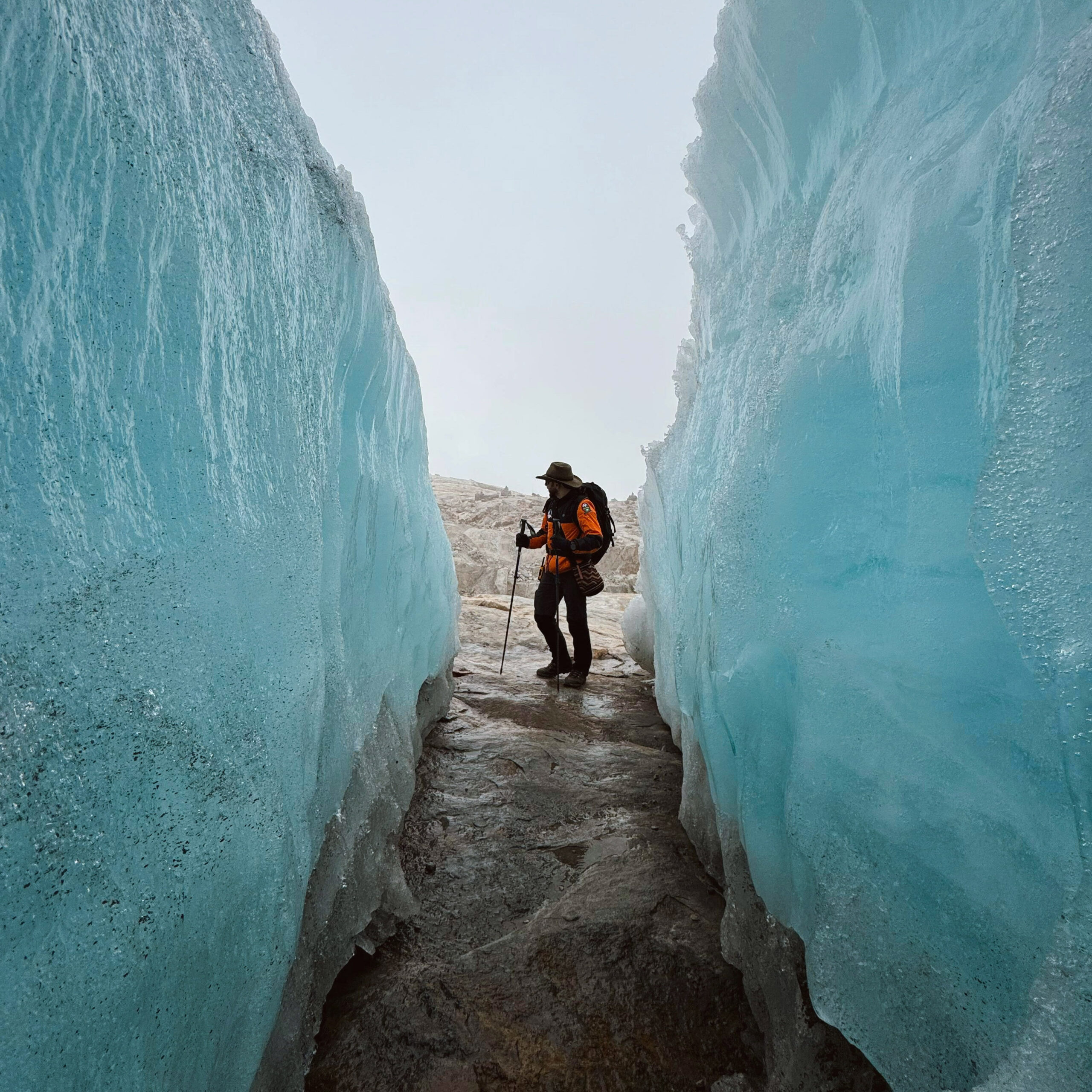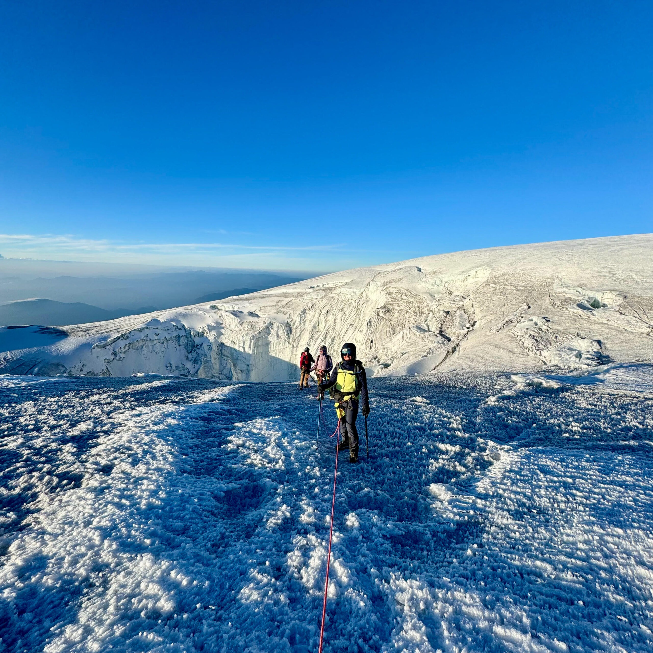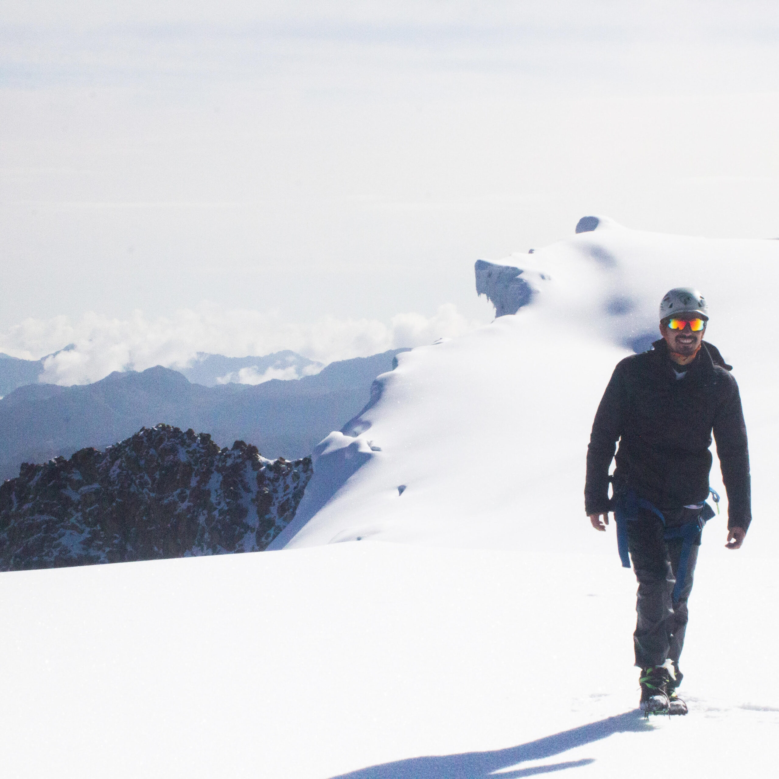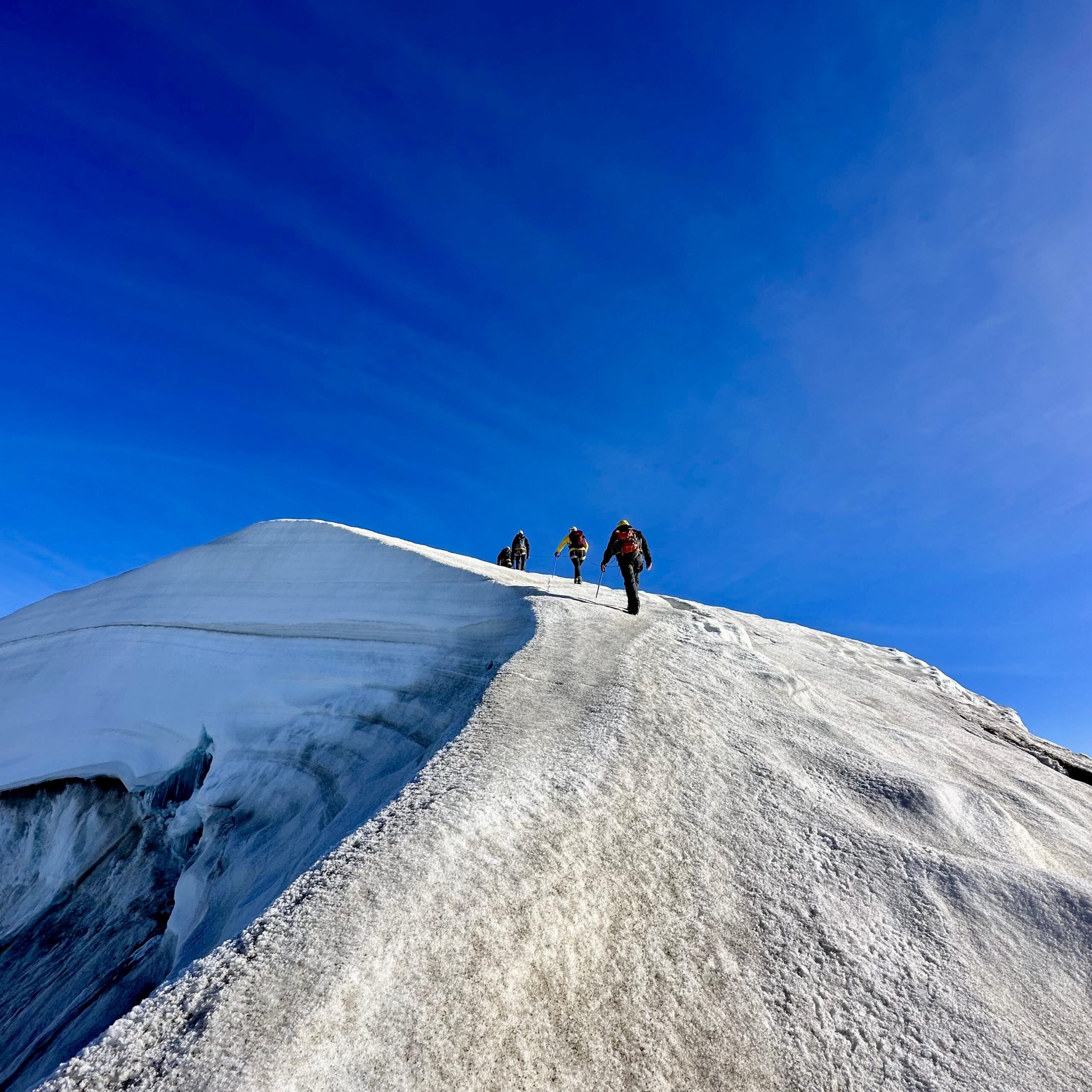 - Equipo para ascenso al glaciar completo: casco, arnés, mosquetón, piolet, crampones y cuerda.