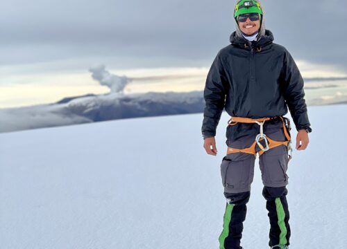 - Equipo para ascenso al glaciar completo: casco, arnés, mosquetón, piolet, crampones y cuerda.